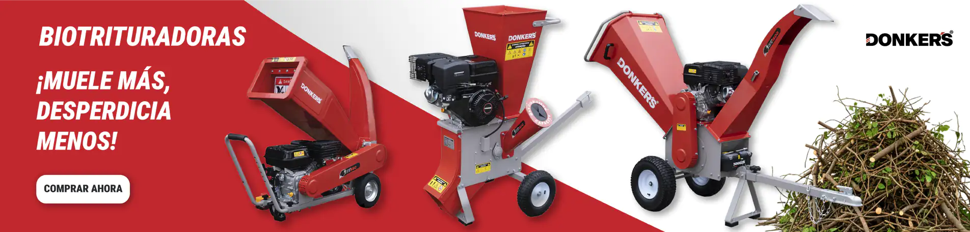 Trituradoras de gasolina, trituradoras eléctricas y trituradoras montadas en tractor.