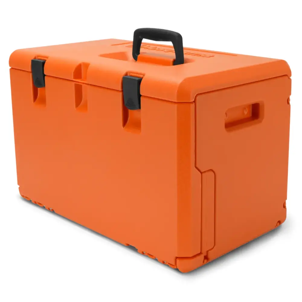 Caixa de Transporte para Motosserra Powerbox® Husqvarna empilhável, indicada para guardar as motosserras Husqvarna desde o modelo 136 até o 372 XP® e 576 XP® inclusivos.