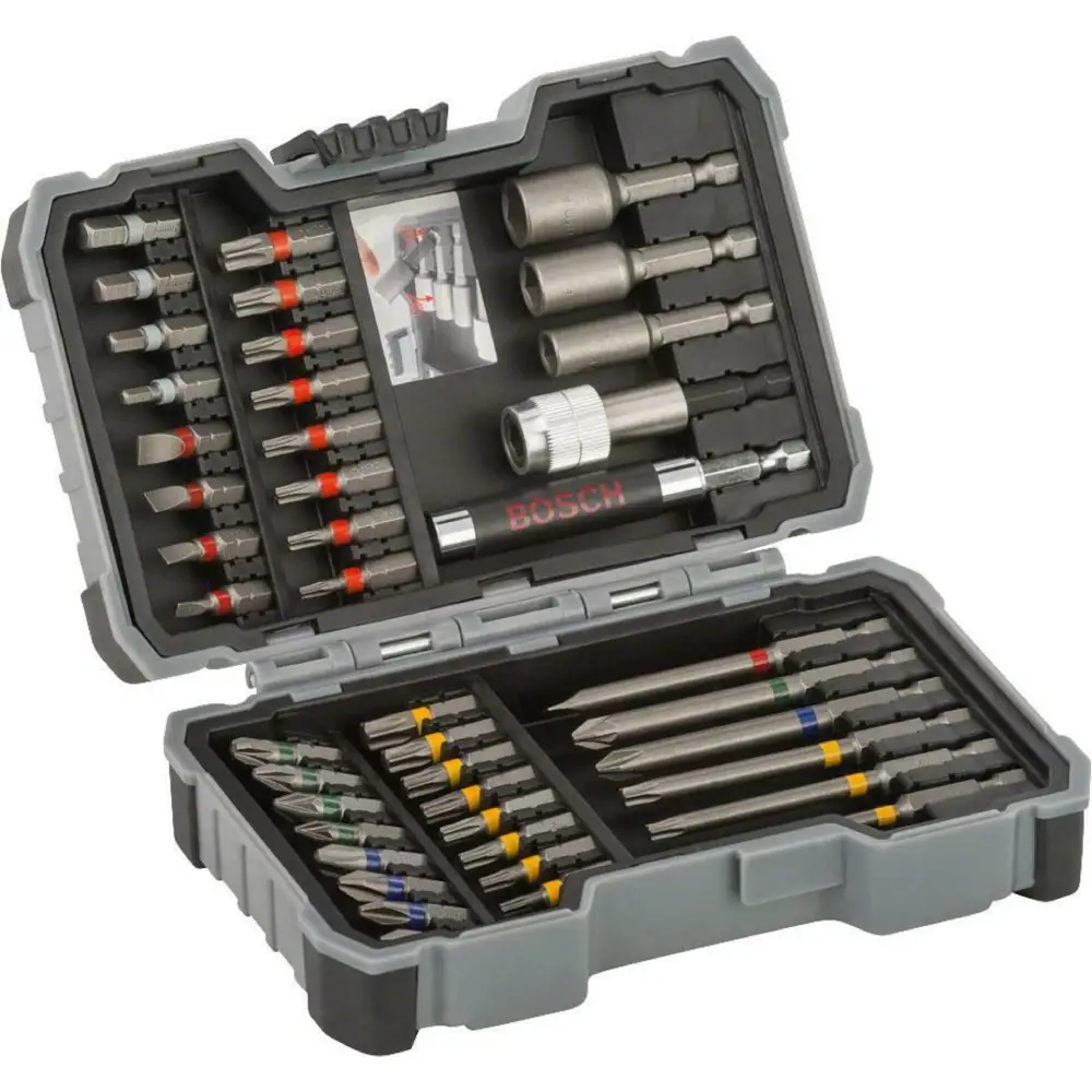 O Conjunto Bosch Chaves/Pontas 43 Peças é uma solução versátil e de alto desempenho para todos os tipos de tarefas de aparafusamento!