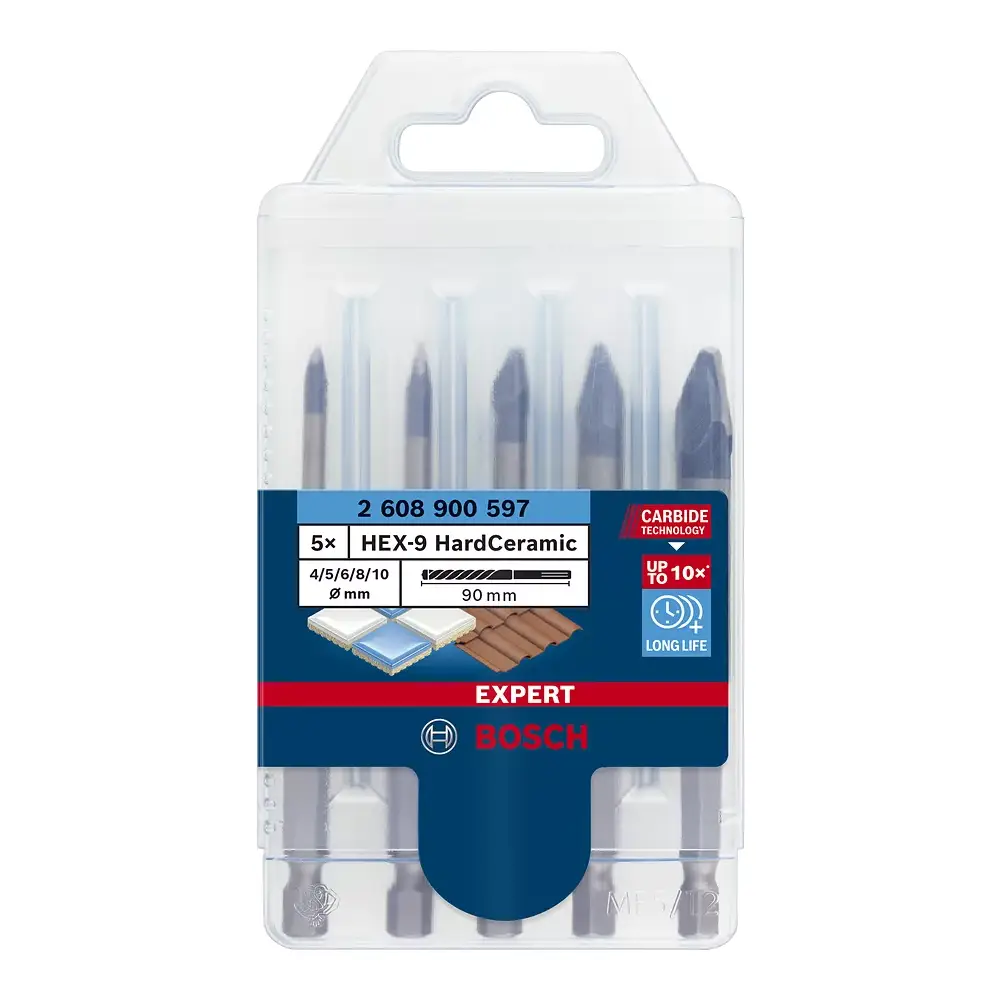 A sua resistência é assegurada pela tecnologia exclusiva Bosch Carbide, que proporciona uma ponta de broca excepcionalmente duradoura, mesmo ao trabalhar com azulejos duros.