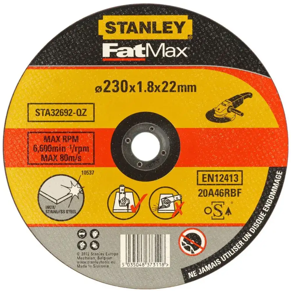 Disco em Aço Inox 230X1.8MM Stanley STA32692-QZ concebido para corte fino e para cortar em aço inoxidável.