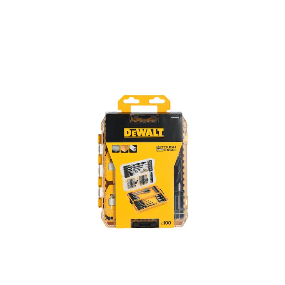 KIT Aparafusar e Furar DeWALT com100 peças versátil e de grande armazenamento.