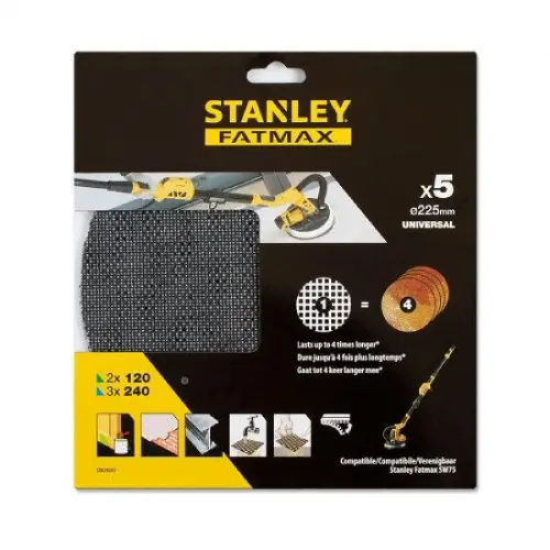 Compatível com lixadoras de drywall, a Lixa STANLEY STA39297-XJ é perfeita para nivelar, alisar e preparar paredes e tetos de gesso para pintura ou outros acabamentos.