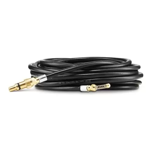 A Mangueira Desentupidora 8M Nilfisk tem encaixe metálico rápido e pode ser acoplada diretamente à pistola de lavagem da sua Lavadora de Alta Pressão.