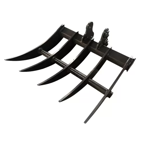 O Ancinho p/ Mini Giratória Donker’s é o método mais eficiente de limpar terrenos com raízes de árvores, pedras ou detritos que estejam presas ao solo e sejam difíceis de movimentar com um balde.