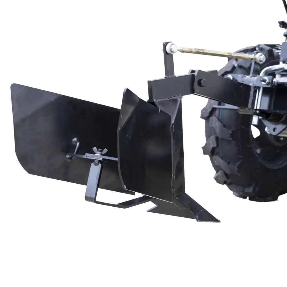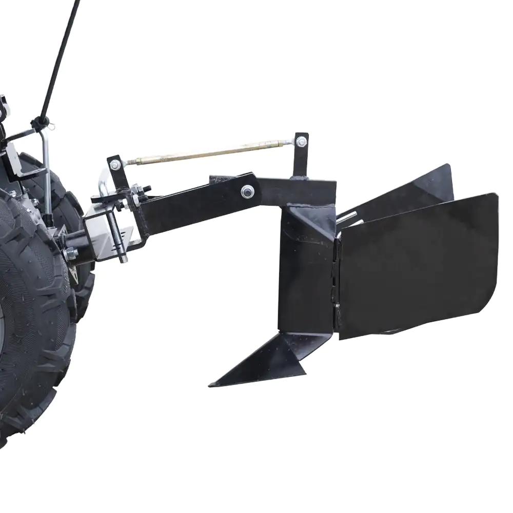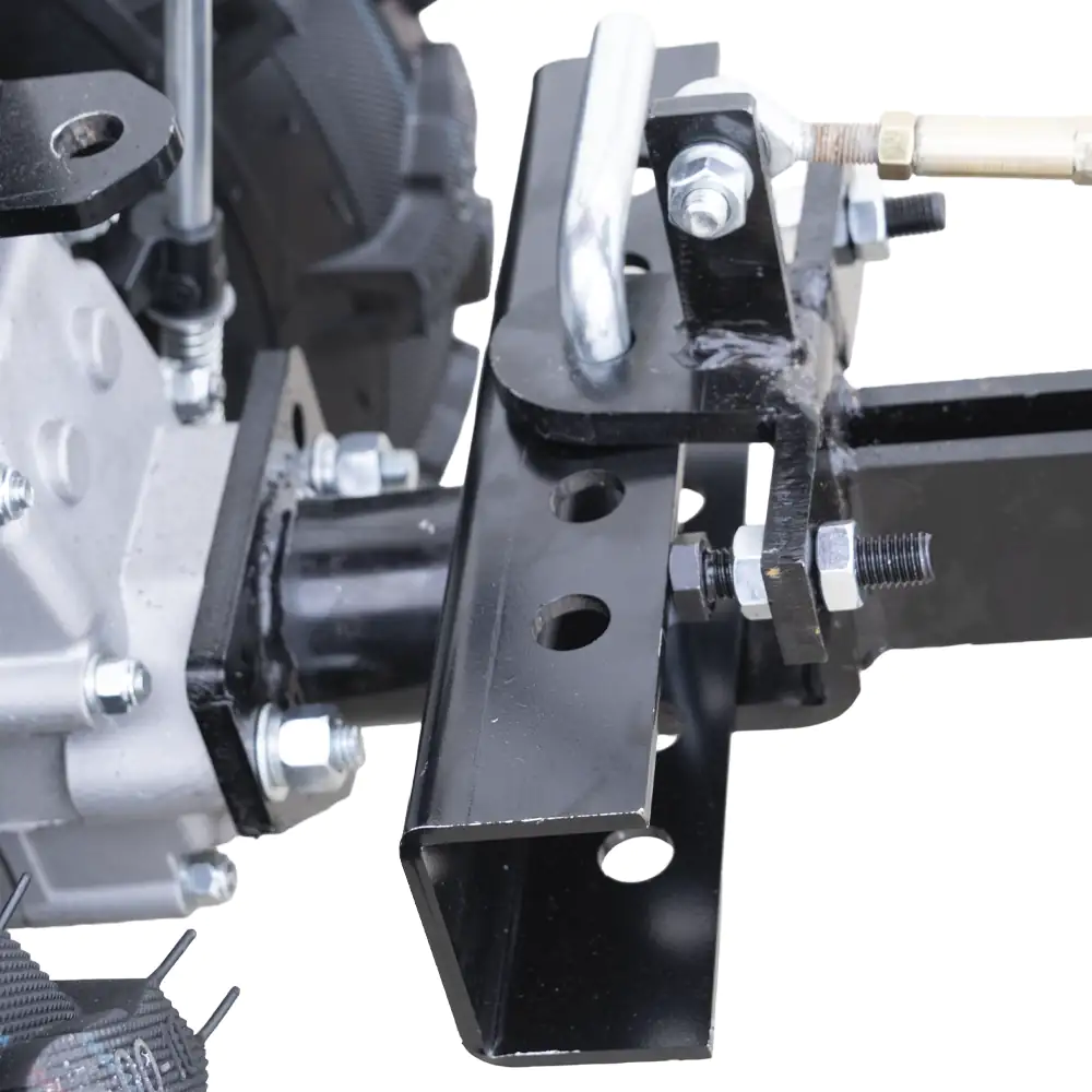 Acoplamento Robusto: O cabeçote de engate traseiro é fabricado em aço espesso para suportar a resistência da terra durante o avanço.