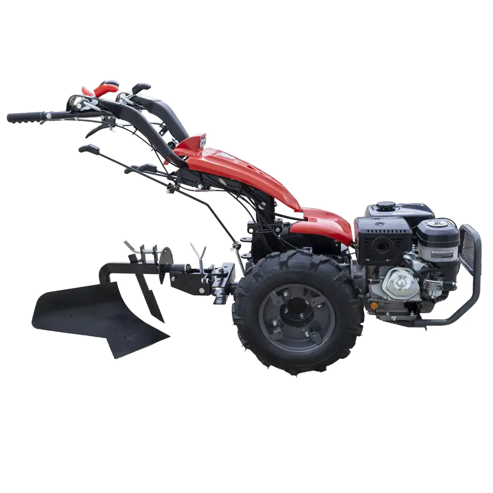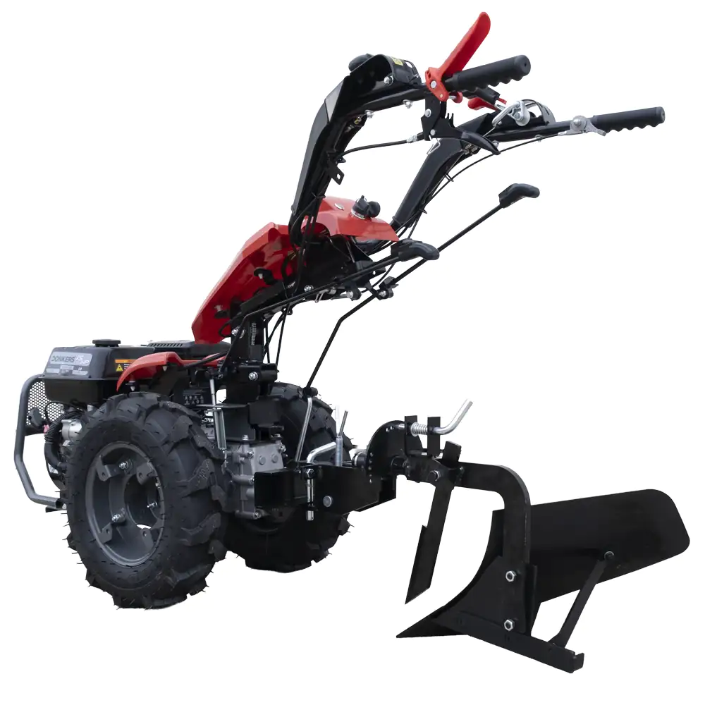 Mecanismo Descentrável: Ao contrário das charruas fixas, este modelo permite deslocar lateralmente o corpo de corte em relação ao eixo central do motocultivador, facilitando assim o trabalho junto a muros, sebes ou bordaduras.