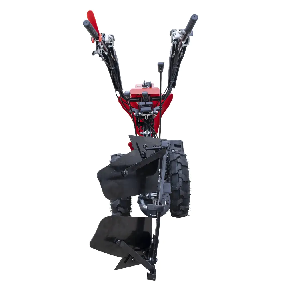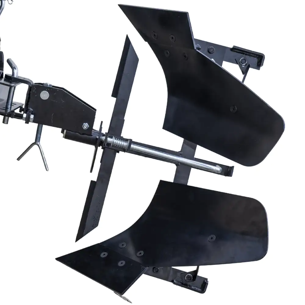 Regulação de Ângulo: Inclui uma manivela e um sistema de pinos para ajustar a inclinação e a profundidade de ataque ao solo.