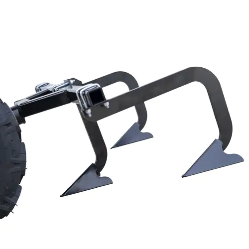 • Configuração de Trabalho: O acessório possui 3 dentes robustos (ponteiras em formato de "V" invertido) concebidos para penetrar e revolver o solo de forma eficaz.