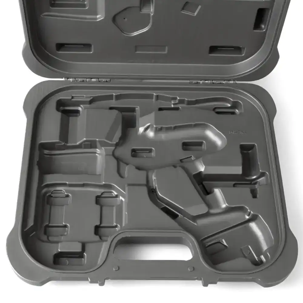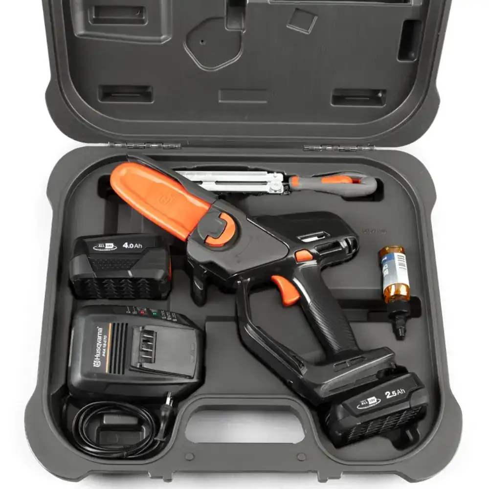 Esta caixa da Husqvarna tem espaço dedicado para a podadora, 2 baterias POWER FOR ALL de 18 V e um carregador, além do espaço adicional para mais acessórios de poda, como a garrafa de óleo, a corrente ou barra extra, uma lima de corrente ou o manual do produto.