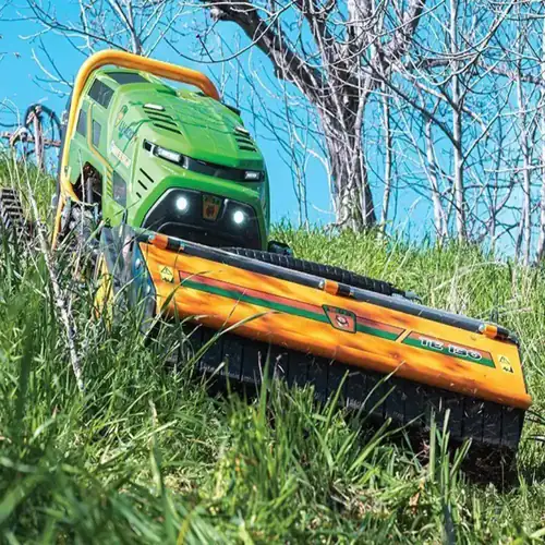 O sistema hidráulico proporciona uma transmissão de potência constante e um desempenho de confiança, enquanto o design do equipamento maximiza a segurança e reduz a projeção de detritos durante a operação. Compatível com o Robot Destroçador de Mato LV 400 X, o triturador adapta-se às irregularidades do terreno e funciona com precisão em declives, encostas e zonas de difícil acesso.