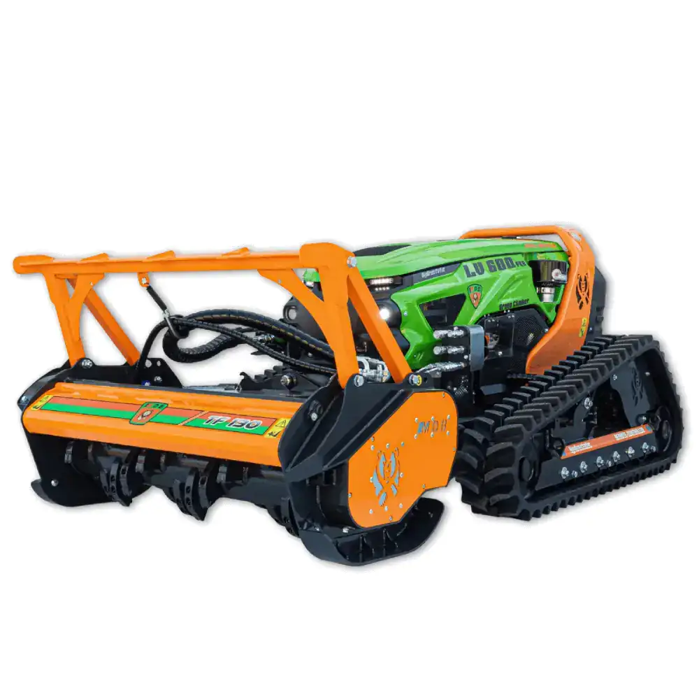 O Triturador Florestal TF 125 fabricado para o Robot Destroçador de Mato LV 600 PRO é um acessório profissional de alto desempenho projetado para limpeza e destroçamento de vegetação densa em terrenos difíceis e inclinados.
