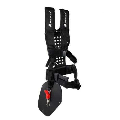 Arnês Profissional Benza é ideal para trabalhos exigentes com roçadoras, distribuindo o peso entre cintura, ombros, costas , peito, e assim reduzindo fadiga do operador.