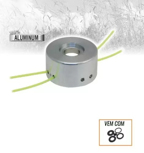 Cabeça para roçadora, em alumínio. Encaixe universal. Adapta-se a qualquer modelo de roçadora. Pode ser usada com uma campânula.