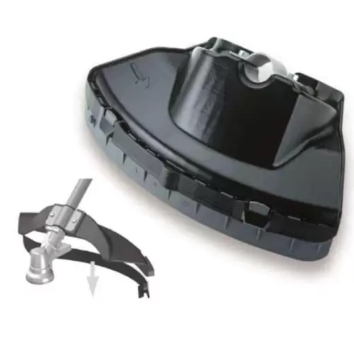 O resguardo do disco é uma peça essencial para o operador da roçadora, como para as pessoas que estão ao seu redor. O resguardo foi projetado para cobrir a parte do disco que gira a alta velocidade, reduzindo assim o risco de projeção de detritos e prevenindo o contacto adicional com o disco em movimento. Este resguardo é compatível com discos de corte que possuem 24mm / 26mm / 28mm de diâmetro.