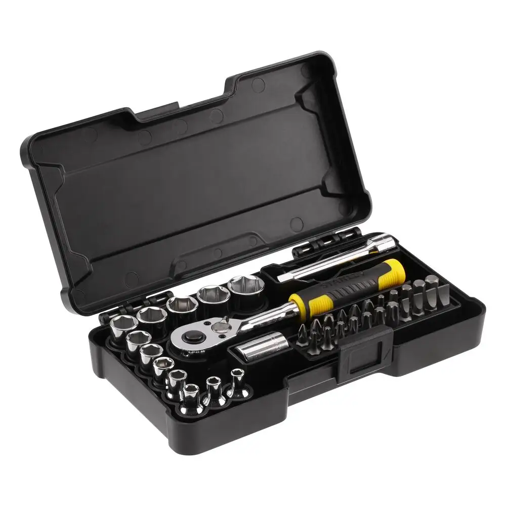 Caixa de ferramentas - 37 peça STANLEY® com roquete, extensão e adaptador, e pontas + chaves de caixa, para os principais trabalhos de apertar e aparafusar.