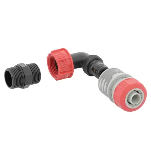 O kit inclui um conector automático de alto fluxo de 19 mm.