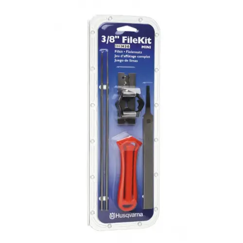 Este kit de afiamento da Husqvarna foi desenvolvido para facilitar a manutenção e afiação de correntes de motosserra.