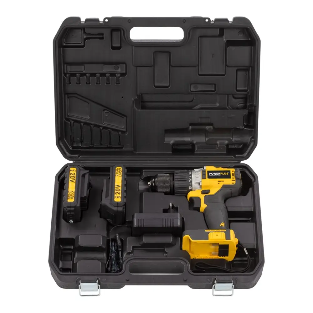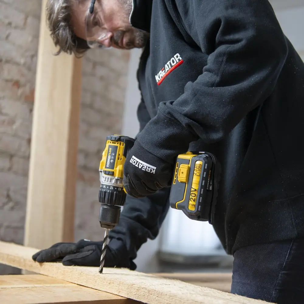 Esta Aparafusadora de Impacto PowerPlus 20V sem fios é extremamente versátil: perfura madeira e também é ideal para montar móveis.