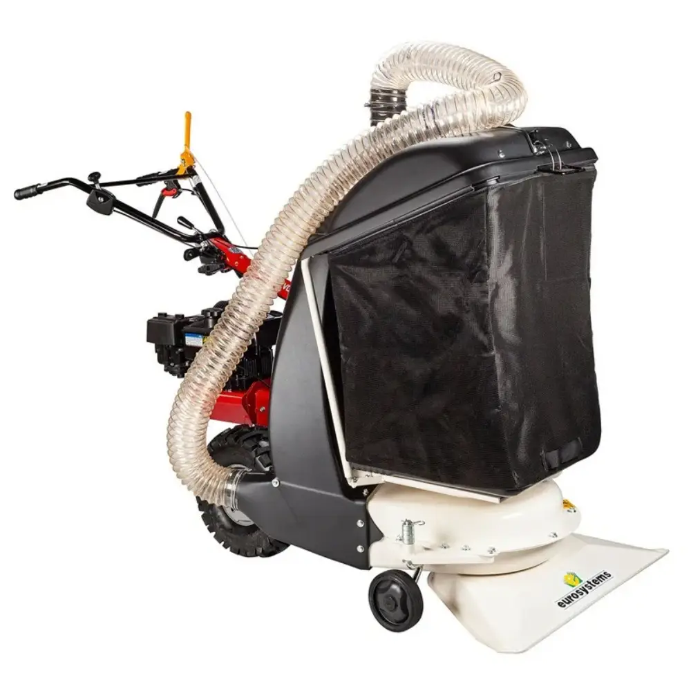 Com rodas ajustáveis entre 2 cm e 6,4 cm e ventilador de aspiração reversível com caudal máximo de 13,6 m³/min, permite uma remoção eficiente de folhas e detritos.