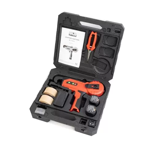 É uma ferramenta prática, robusta e leve que foi projetada para amarrar ramos de até 25 mm de diâmetro em suportes, com uma distribuição de fios ajustável tanto no número de atados quanto na intensidade de amarração através do prático display.