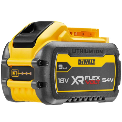 La batería DeWALT FLEXVOLT XR de 9 Ah ofrece un voltaje flexible de 18 V o 54 V para una potencia sin igual.