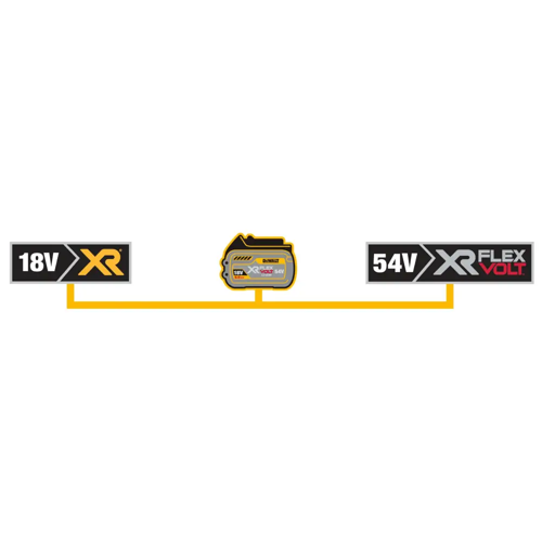 Es la única batería del mercado que cambia automáticamente de 54 V a 18 V, lo que permite alimentar herramientas eléctricas de 18 V y 54 V de la gama XR.