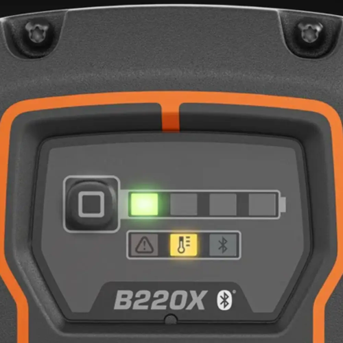 La batería 40-B220X tiene un diseño robusto que cumple con los estándares de resistencia al agua IPX4, lo que la hace ideal para usar en cualquier clima con todos los equipos profesionales Husqvarna de 36 V.