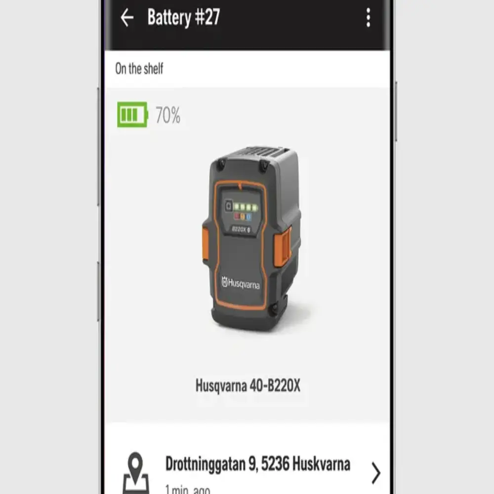 As baterias com um módulo de conectividade integrado podem ser facilmente conectadas aos Husqvarna Fleet Services™.