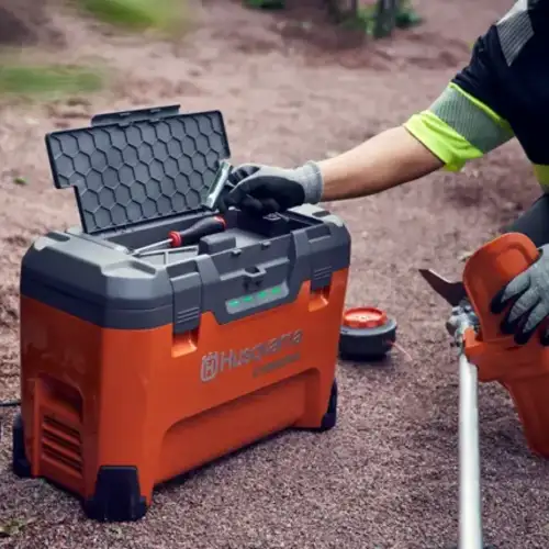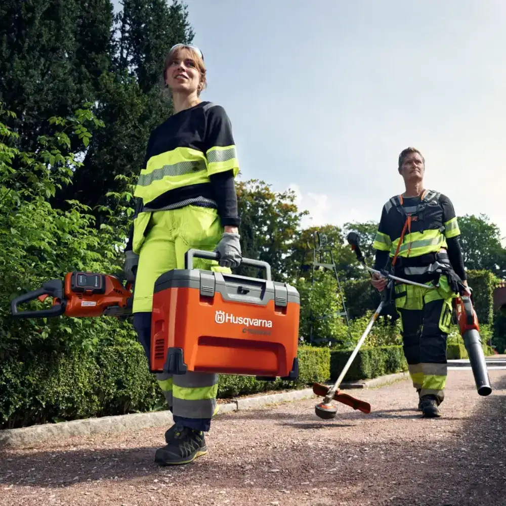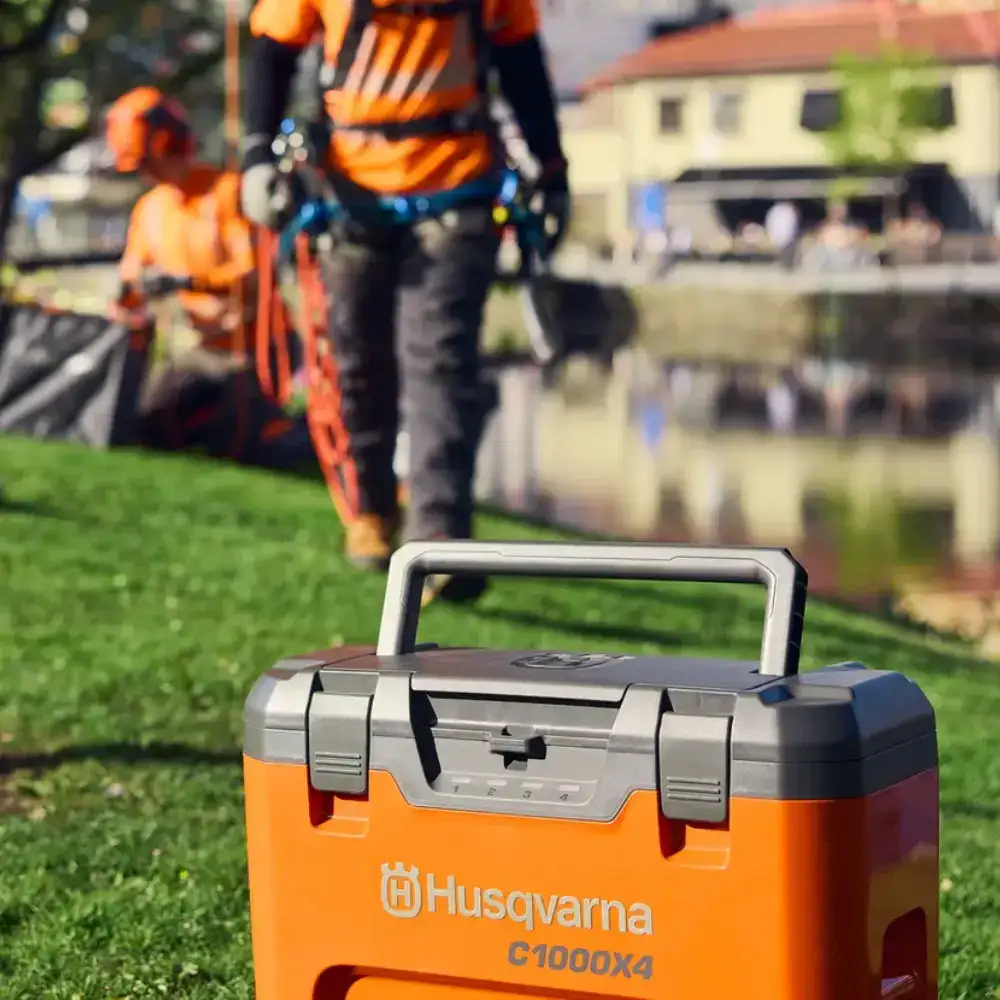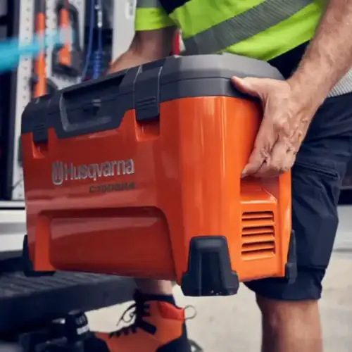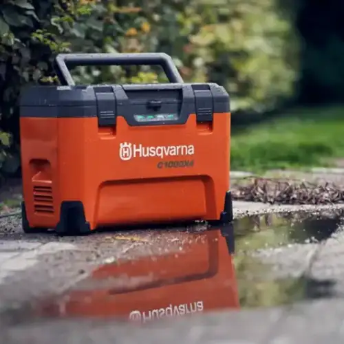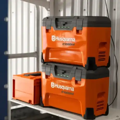 Multi-Carregador Husqvarna 4 Bat 40-C1000X4 para carregar onde quiser, seja na oficina, no local de trabalho, no seu carro ou atrelado.