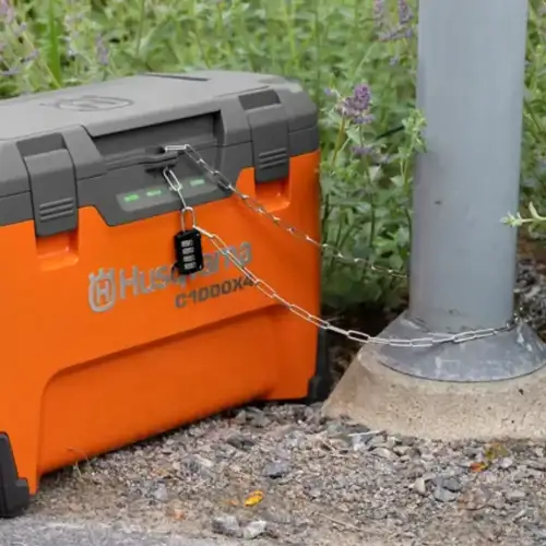 • Proteção contra roubo - Um cadeado ou trava de arame pode ser colocado para proteger as baterias e a própria unidade contra roubo.