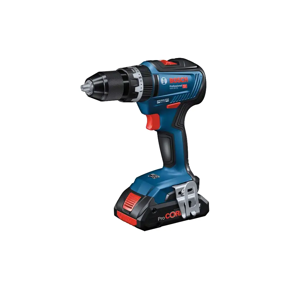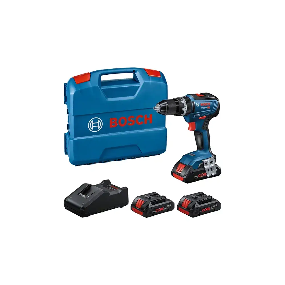 Conjunto Profissional BOSCH composto pelo Berbequim com percussão sem fio de 18V + 3 baterias 4.0Ah ProCORE de 18V + Carregador de 18V + Mala de transporte.