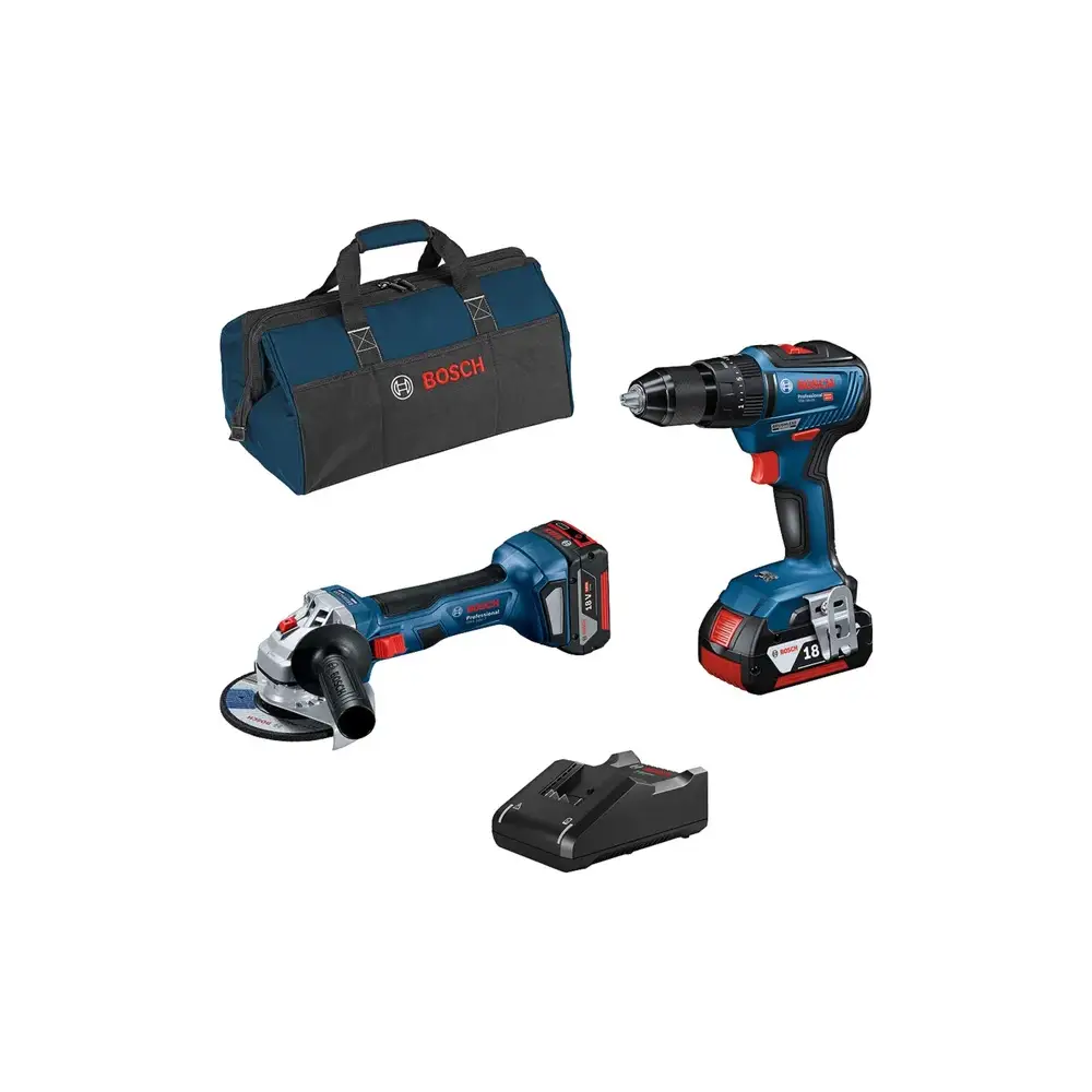 Kit Bosch Berbequim GSB 18V-55 + GWS 18V-7 + 2 Baterias 4,0Ah + Saco