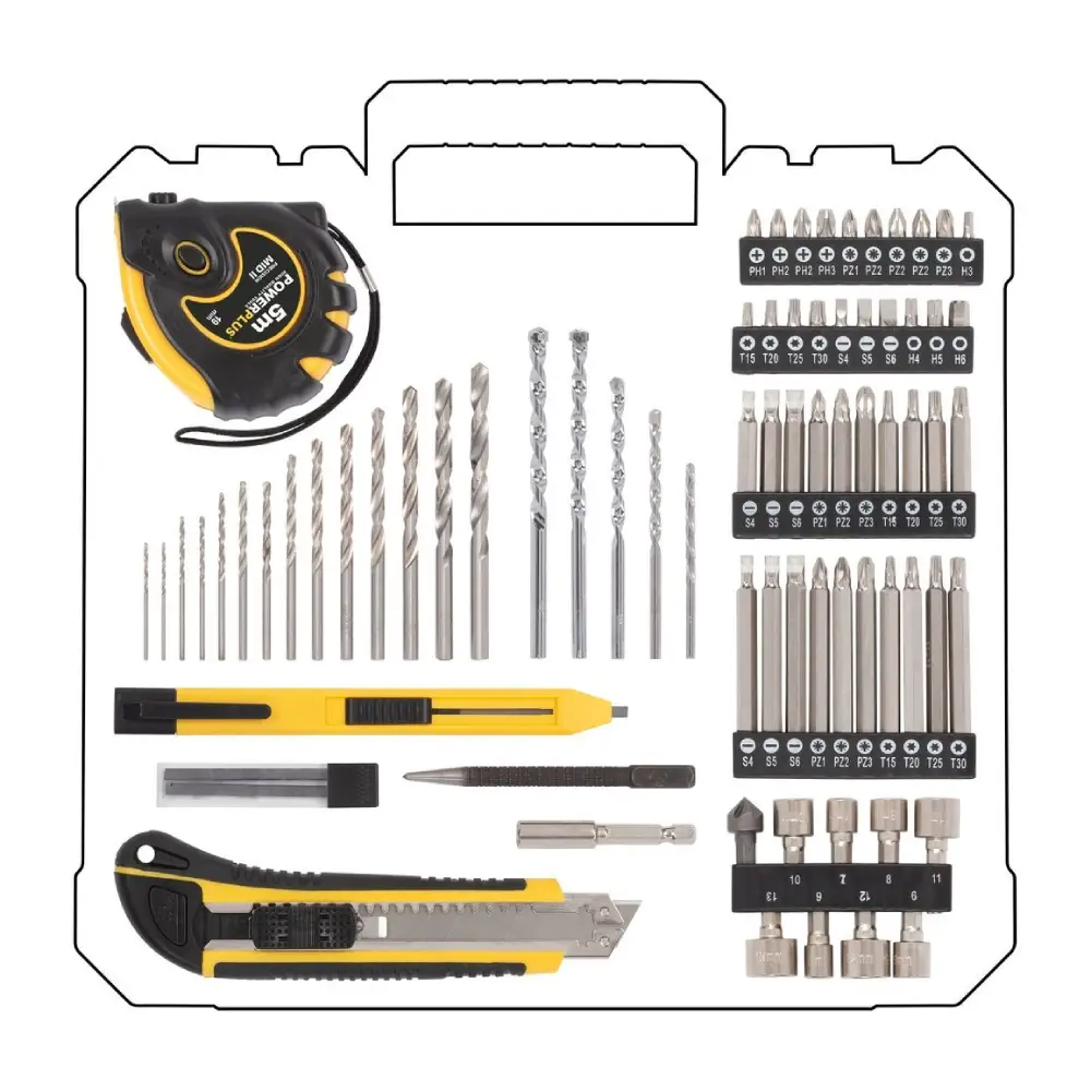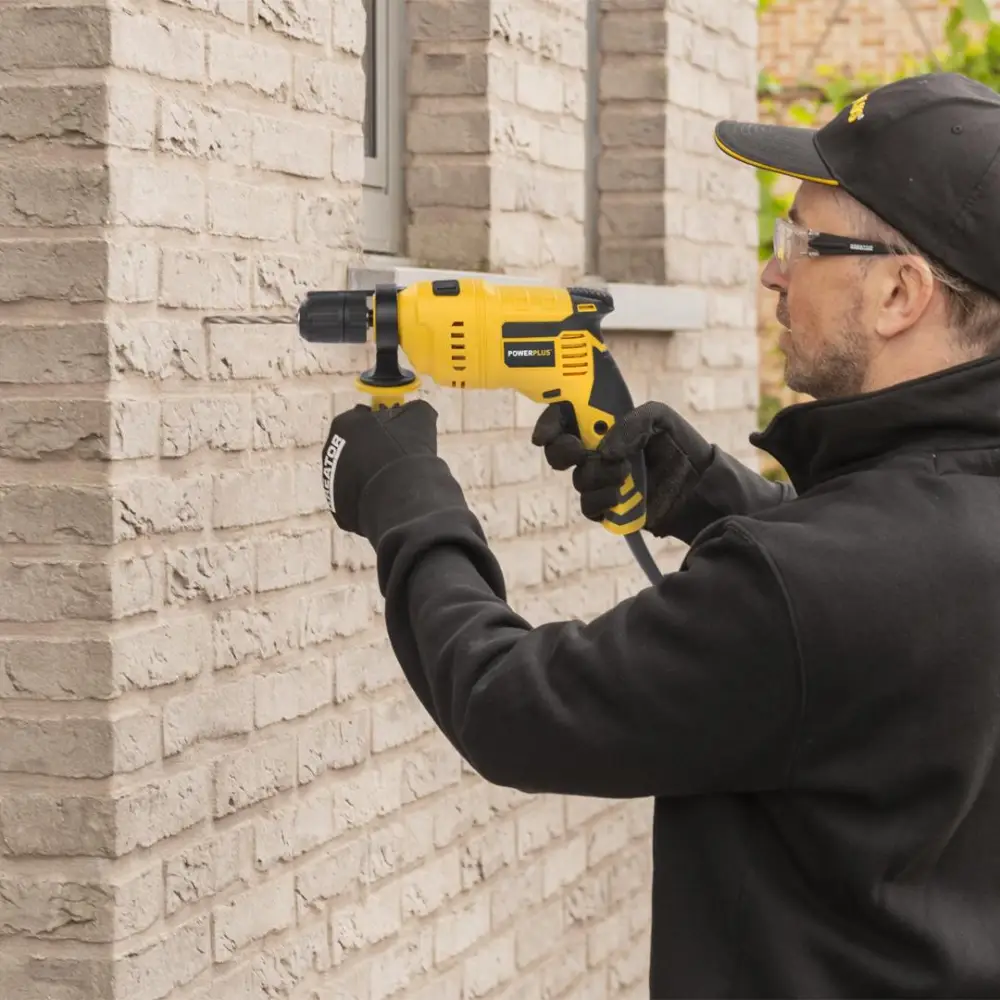 O Berbequim de Impacto PowerPlus 800W 78 Acc é a solução perfeita para trabalhos de perfuração em madeira, metal, betão e muito mais!