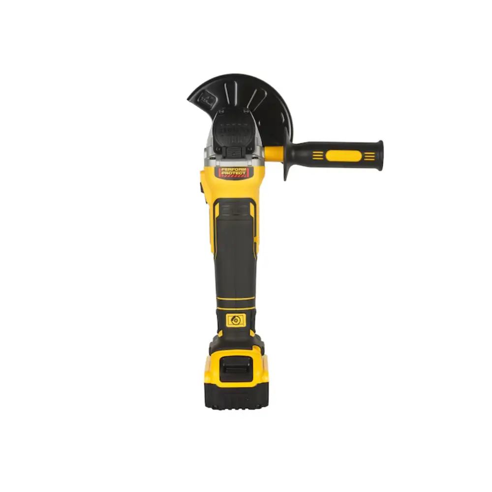 Rebarbadora S/Escovas DeWALT com motor de 18V e travão eletrónico que consegue parar o disco de forma rápida quando se solta o gatilho.