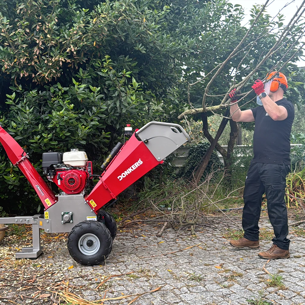 Potente Biotriturador Donker’s BT1503H Honda GX390 Rebocável com reputado motor de tecnologia de ponta japonesa de 13HP com arranque elétrico.
