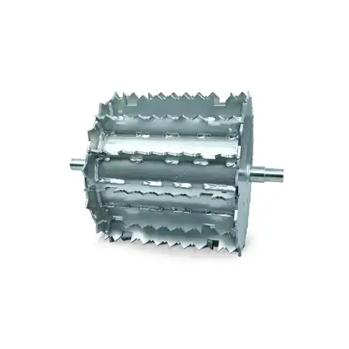 O biotriturador Negri está equipado com 24 martelos móveis reversíveis fabricados em aço endurecido, que garentem um corte eficaz e uniforme.