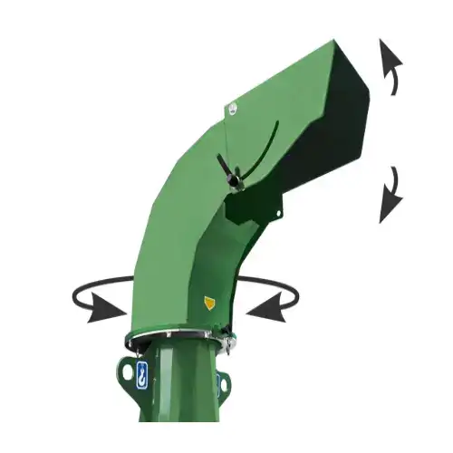 Dispõe de um tubo de ejeição rotativo, com distância e rotação ajustáveis, o que permite expedir o material triturado de forma prática e eficiente.