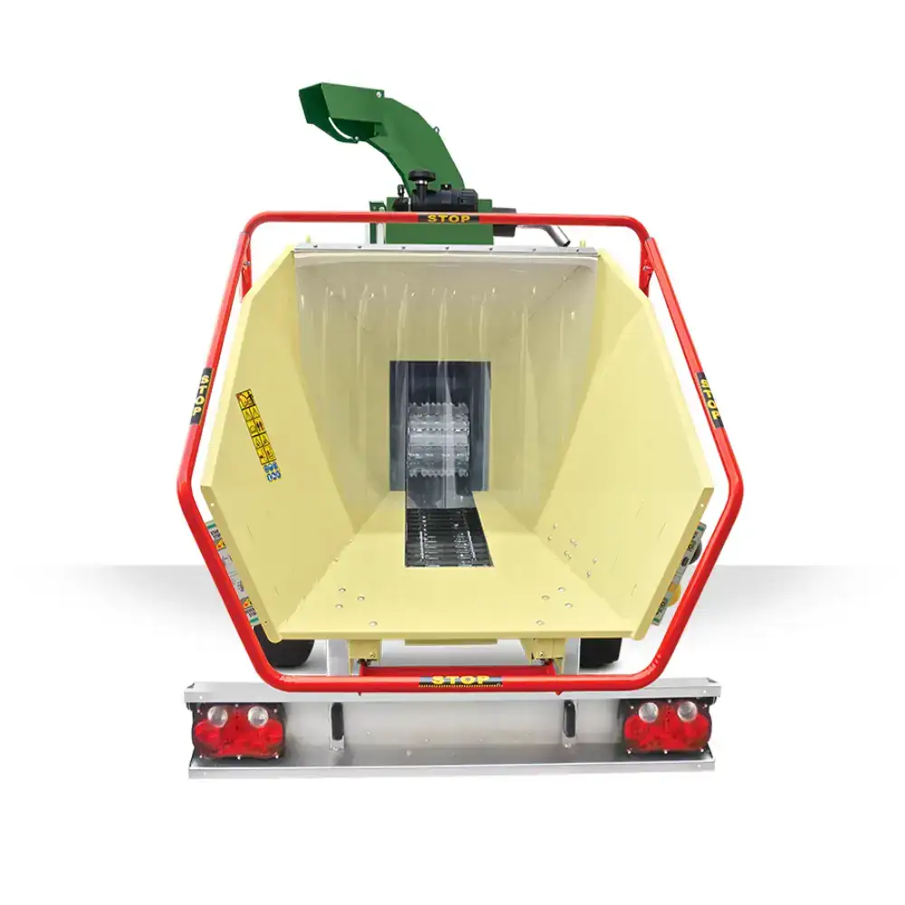 O Biotriturador Negri R280DK260TRGN-M conta com um reboque homolgado para uso na via pública, incluindo uma barra de reboque ajustável com engate de bola, para um transporte seguro e prático entre diferentes locais de trabalho.
