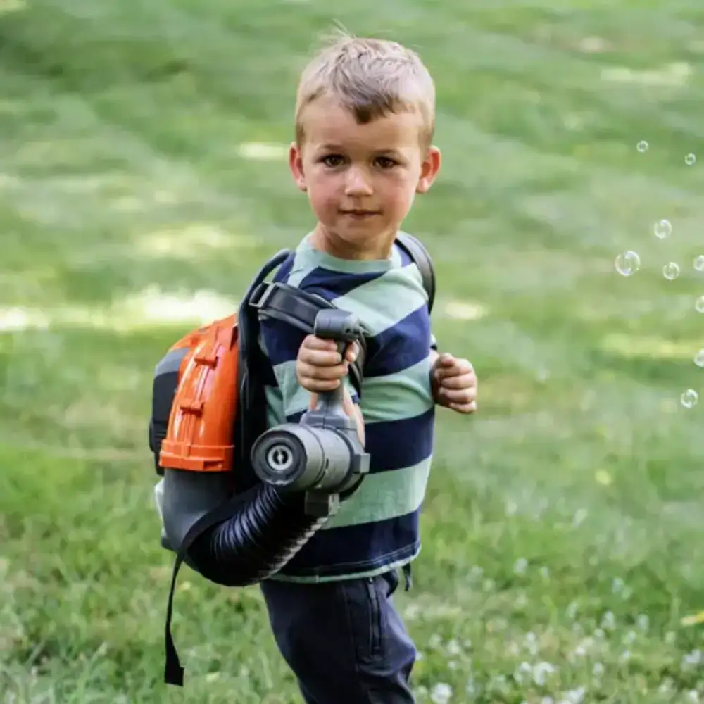 À primeira vista, destaca-se pelo seu design realista, que reproduz de forma fiel os detalhes característicos dos equipamentos originais da marca, permitindo que os mais pequenos sintam que estão a utilizar uma máquina “a sério”. Mas o verdadeiro encanto está na sua funcionalidade: em vez de soprar folhas, como os modelos profissionais, o Soprador de Bolinhas Husqvarna liberta um divertido fluxo de bolinhas de sabão, criando uma atmosfera mágica que enche o jardim de cor e alegria.