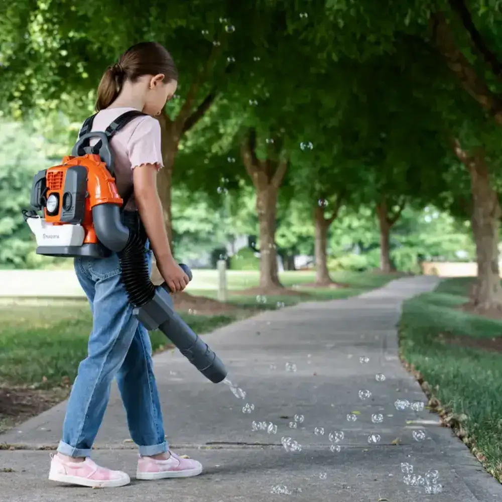 Este brinquedo é perfeito para atividades ao ar livre, incentivando as crianças a correr, interagir e explorar, enquanto se divertem a criar nuvens de bolinhas de sabão. Mais do que um simples brinquedo, o Soprador de Bolinhas Husqvarna promove momentos de partilha em família e aproxima os mais pequenos das tarefas do dia a dia de forma lúdica, educativa e extremamente divertida.