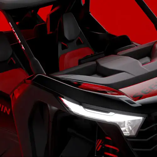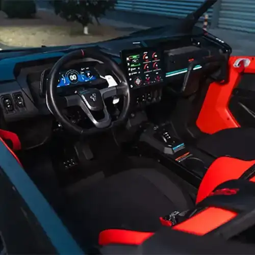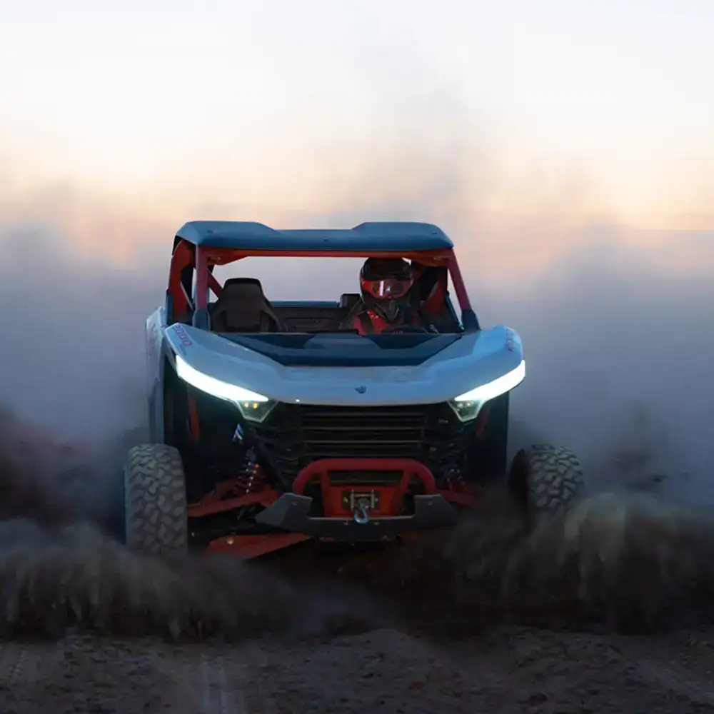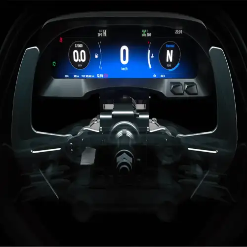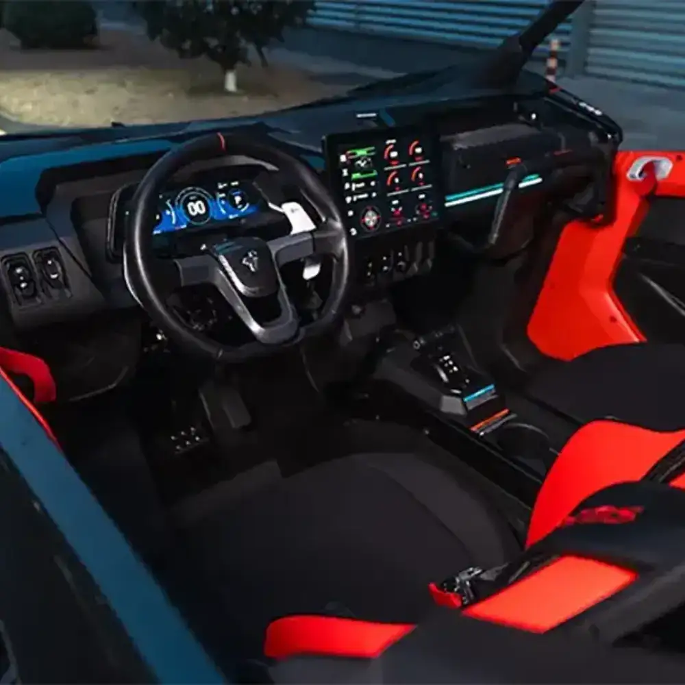 O design robusto e arrojado alia funcionalidade a um visual moderno e imponente. No interior, destaca-se um habitáculo ergonómico com bancos desportivos envolventes, cintos de segurança de 4 pontos, painel digital intuitivo e proteções reforçadas para máxima segurança do condutor e do passageiro.