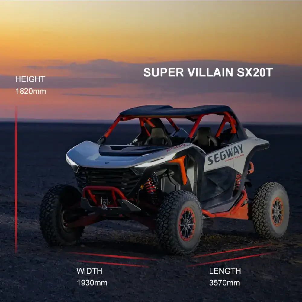 O Buggy Segway Super Villain SX20 T é a fusão perfeita entre a engenharia de alta performance e o espírito aventureiro. Desenvolvido para os verdadeiros entusiastas do todo-o-terreno, este Buggy eleva o conceito de diversão e potência a um novo patamar.