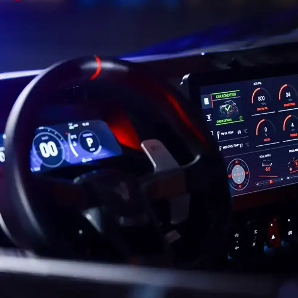 Ambiência Imersiva no Habitáculo - Experiência de alta tecnologia com um volante totalmente novo, patilhas de mudanças e luzes ambiente.