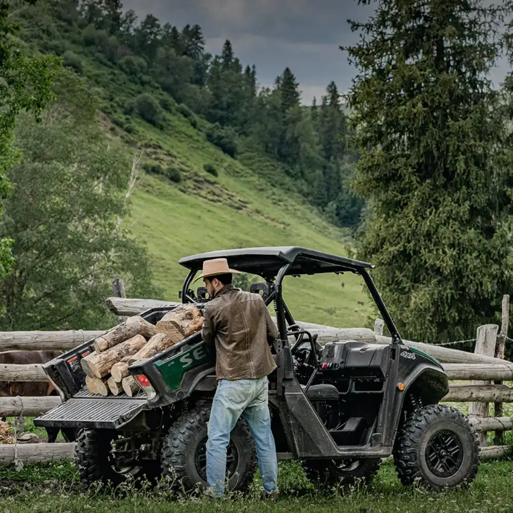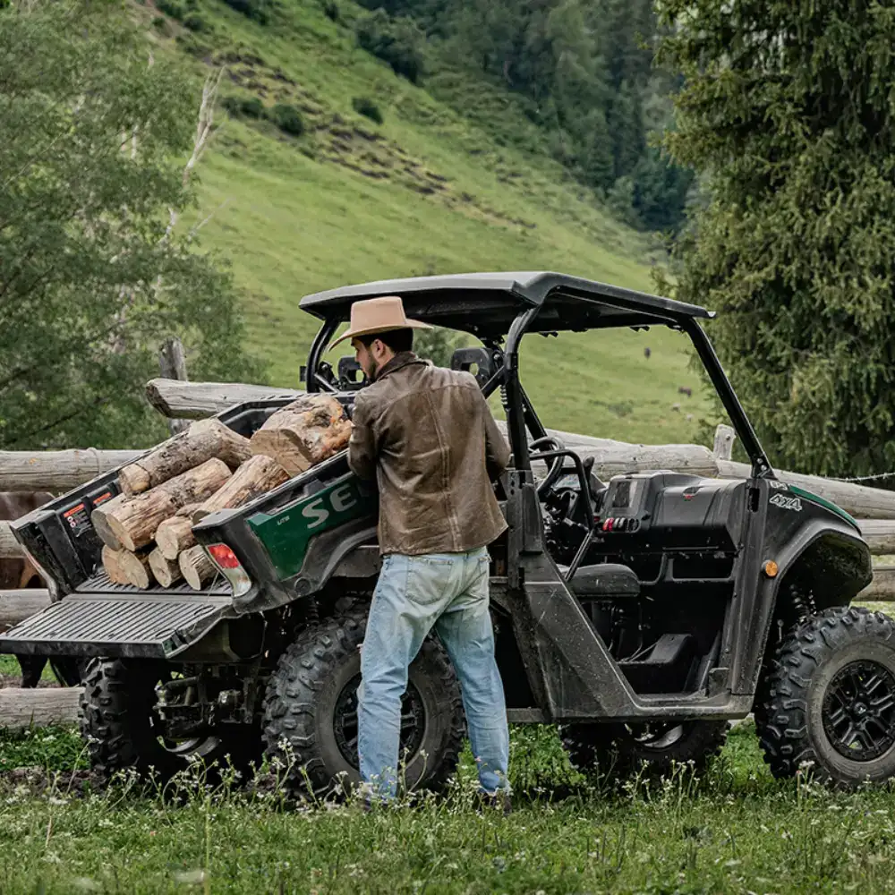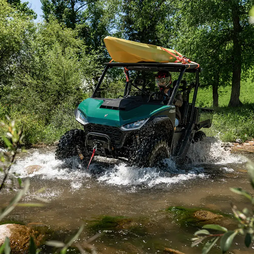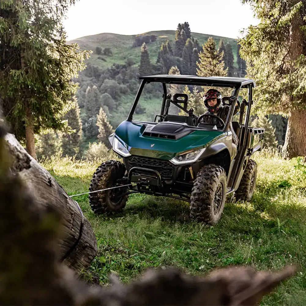Equipado com Motor de 567 cc e 44 cv, tração 2WD/4WD com bloqueio de diferencial e transmissão automática CVTech, oferece excelente capacidade todo-o-terreno.
