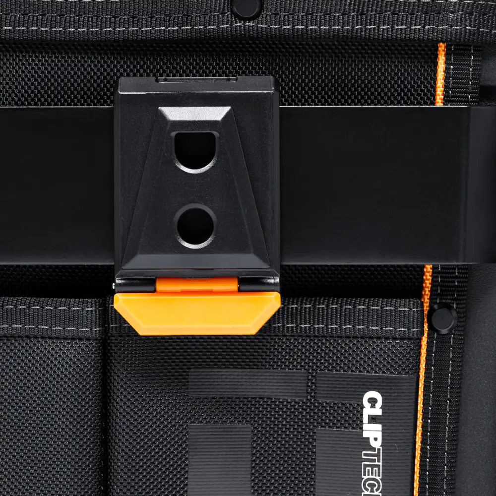 É compatível com todas as bolsas ClipTech™ patenteadas da ToughBuilt, garantindo uma organização completa e eficiente das ferramentas.