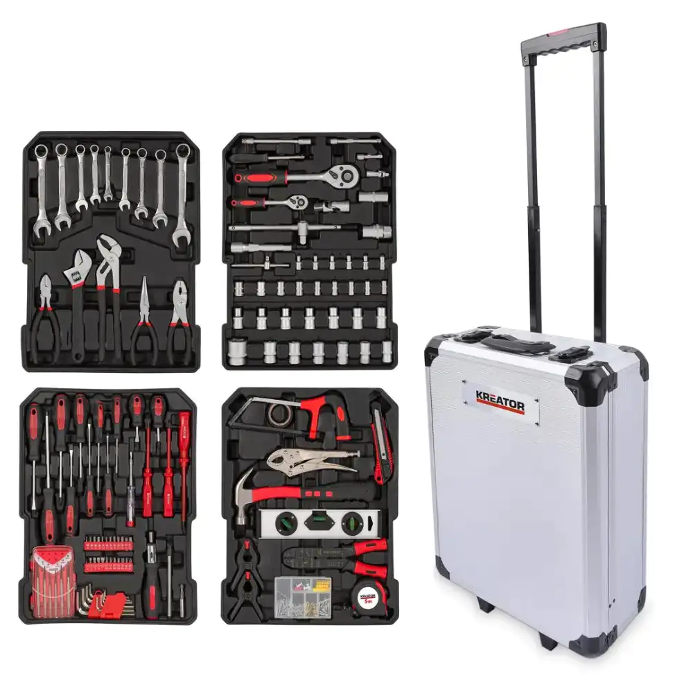 Esta Caixa de Ferramentas Kreator com 253 peças é um conjunto completo de ferramentas manuais desenhado para responder às necessidades de manutenção, reparação e bricolage no dia a dia!