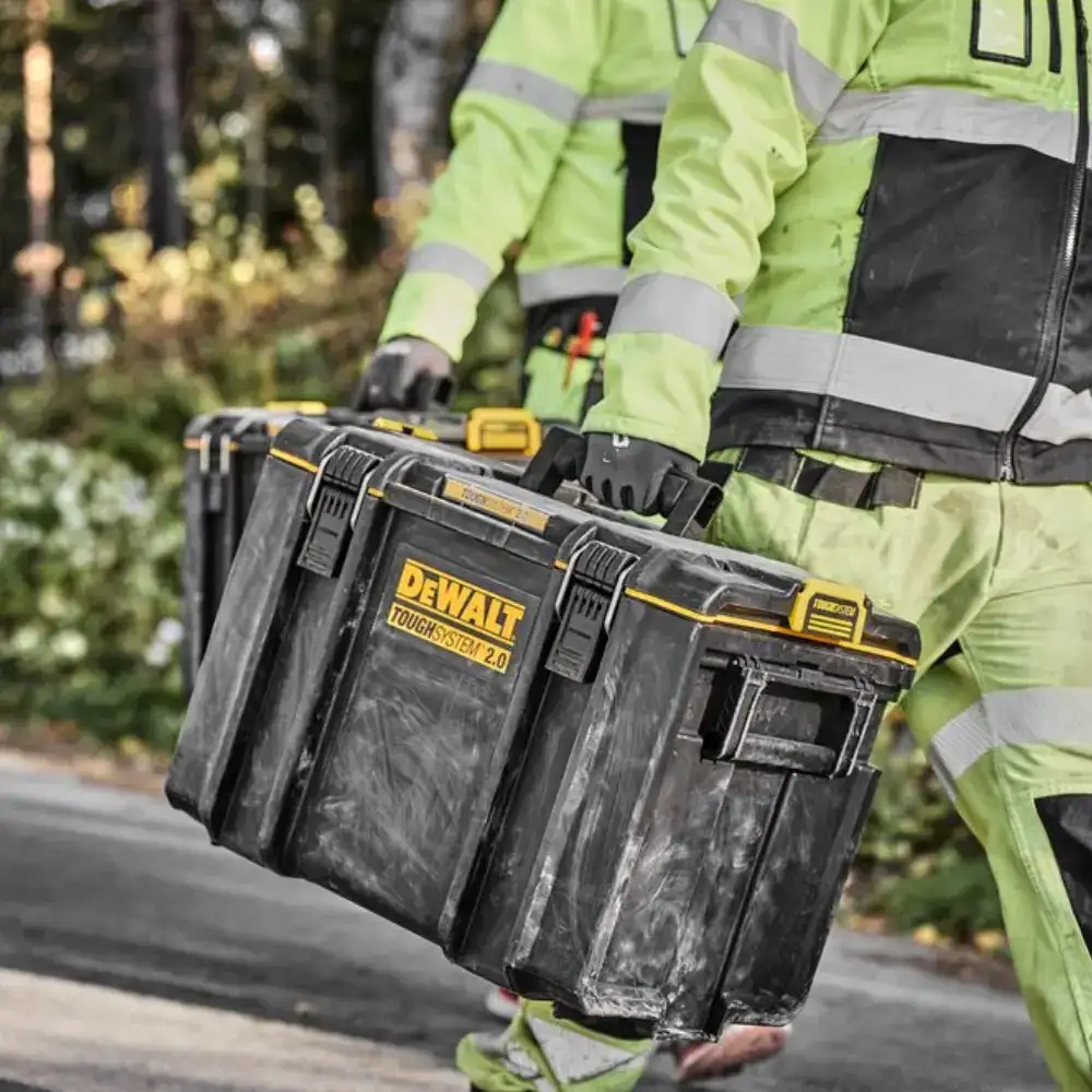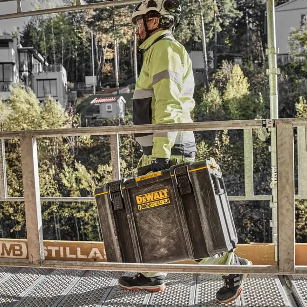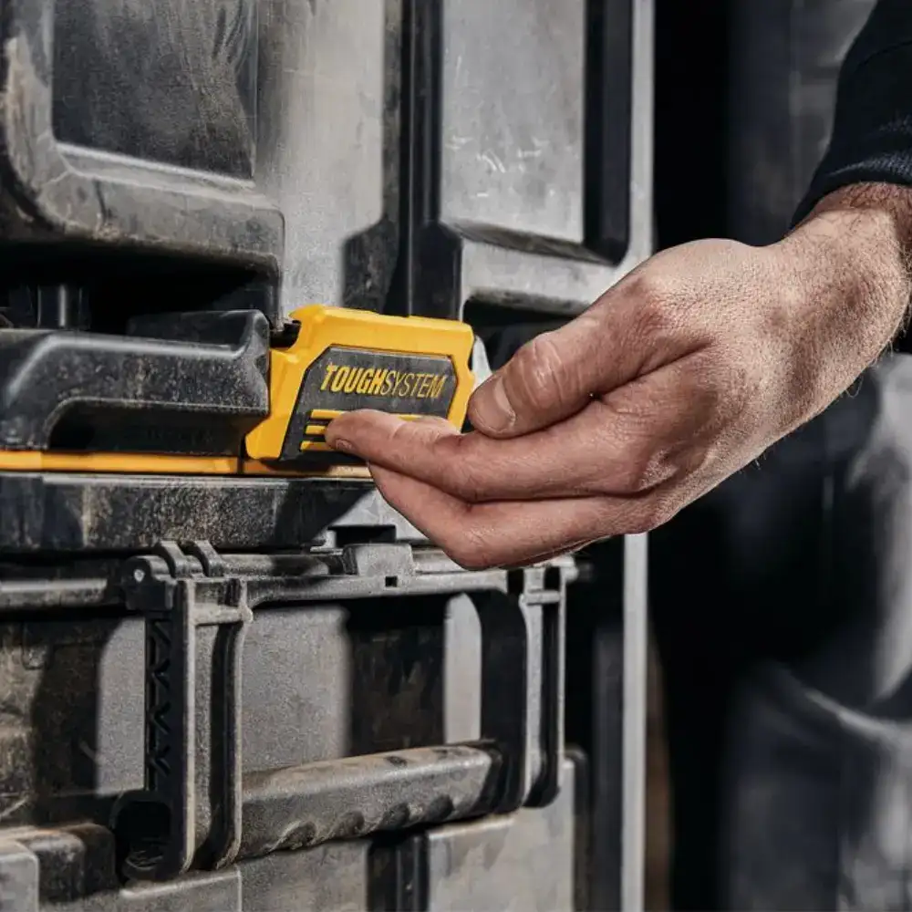 Caixa de Ferramentas Toughsystem 2.0 DEWALT® intuitiva e de fácil uso, com elevada capacidade de carga de 50 kg.