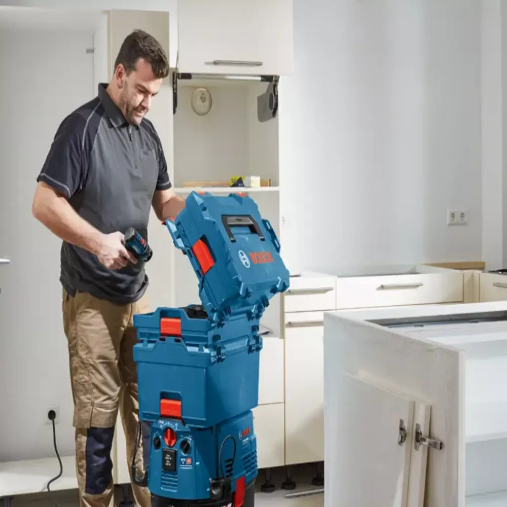 Tudo isto bem organizado uma mala Bosch L-BOXX 136, compatível com o Bosch Mobility System, que garante um ttransporte eficiente e máxima organização em qualquer local de trabalho.