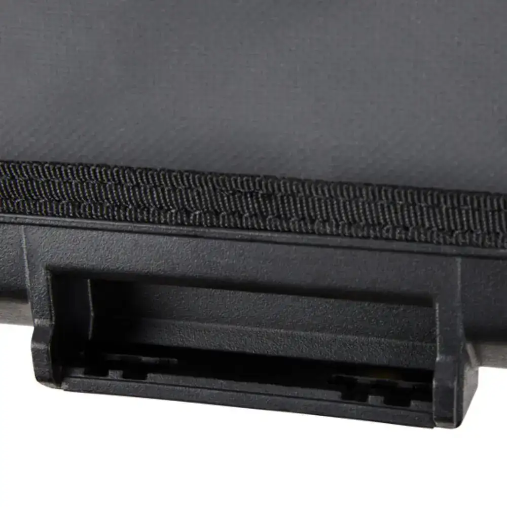 Base impermeável, ligada em meio módulo ToughSystem™, ou seja a mochila consegue ser empilhada com qualquer produto da ToughSystem® 2.0.
